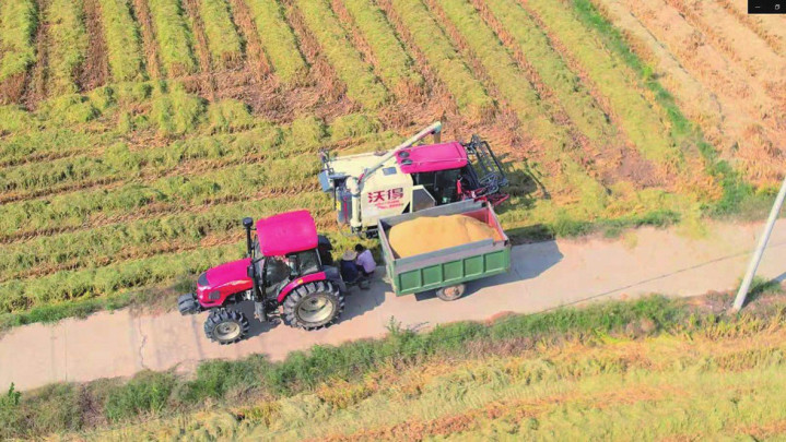 (图2)无人机视角下的机械化收割。